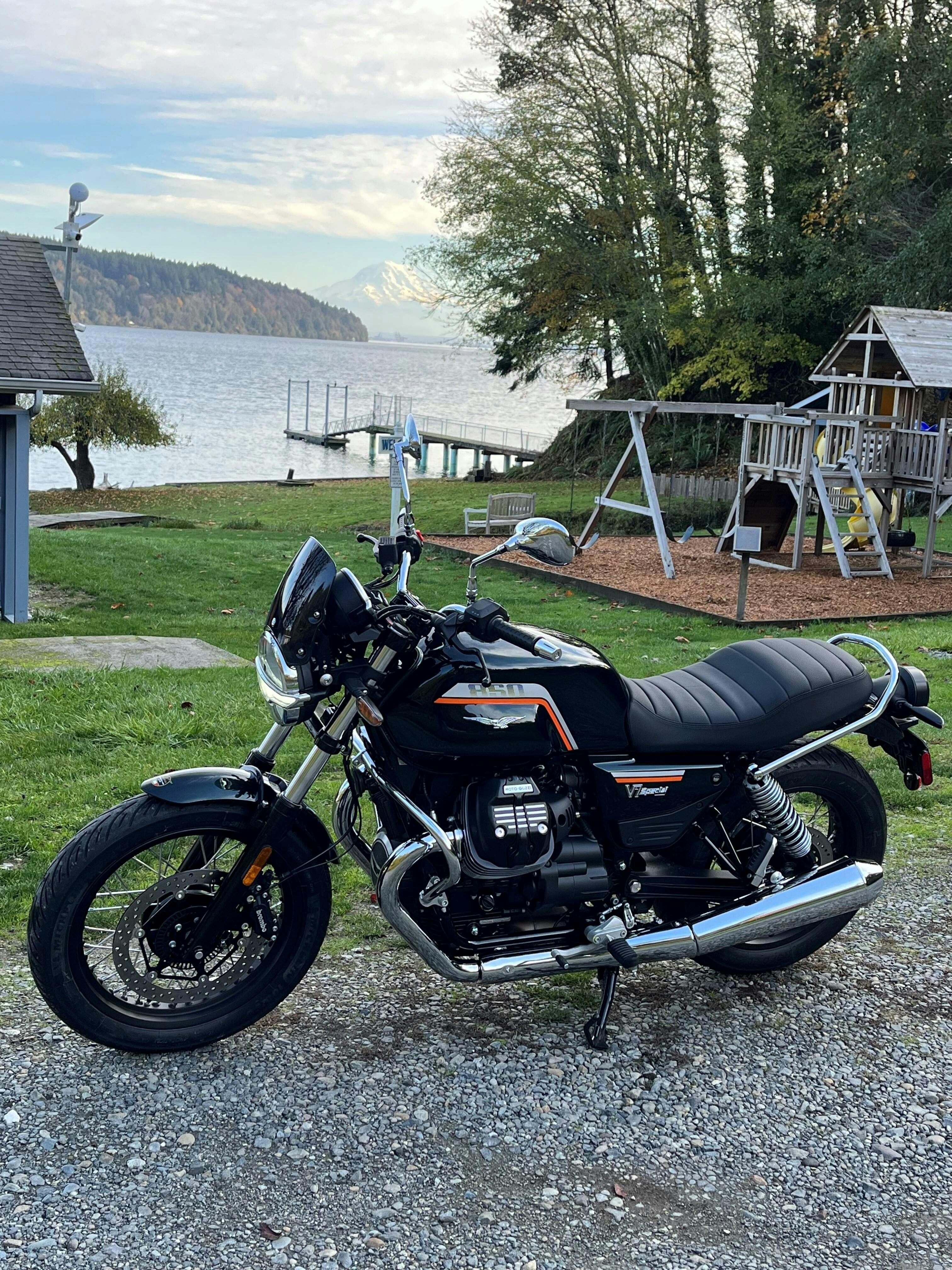 The Moto Guzzi V7 is an exercise in harmony. Apart from its sheer beauty, the bike's appeal is that everything works so well together. The Dart flyscreen and the V7 are perfectly matched. As well as making long trips more comfortable by relieving wind blast, the flyscreen visually completes the front of the bike.